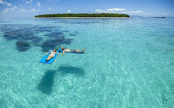 Day 2- Green Island Full Day tour. Enjoy a relaxing day surrounded by white sandy beaches and the beautiful coral gardens of the Great Barrier Reef. Embrace the option of snorkelling or swimming in the crystal clear island waters straight from the beach or float across the reef looking through large viewing windows on the glass bottom boat tour. Your day also includes a delicious freshly prepared buffet lunch served in air-conditioned comfort.